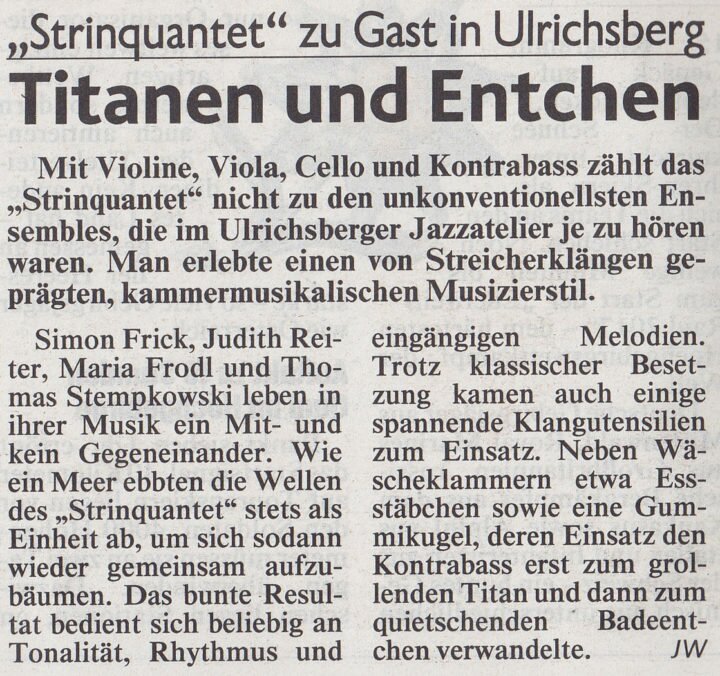 Konzert–Kritik: Strinquantet Live @ Jazzatelier Ulrichsberg (OÖ)